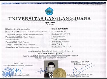 Sebagai bentuk komitmen kami terhadap kualitas pekerjaan dan kepercayaan setiap klien, Saenata Karya didukung oleh kualifikasi akademik dan sertifikasi profesional yang relevan di bidang arsitektur dan konstruksi. Hal ini menjadi dasar penting bagi kami dalam memberikan layanan yang lebih profesional, terukur, dan dapat dipertanggungjawabkan.